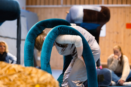 The audience is invited to take part in different parts of the performance: the dancers dance, the audience is gently rocked, and together we build a labyrinth. Each experience is unique, and the performance is designed to facilitate bodily experiences and exploration in a safe environment. We create a space where we can be differently bodied individuals who discover and explore the “terrain” in our own way. Through the use of humour and rhythm, different moods and degrees of closeness emerge as the space gradually changes. The performance also opens for dialogue with the performers. The companion’s role is important to help the audience get as much as possible out of the performance; companions receive necessary information along the way, and it is possible to talk to the performers during the performance.