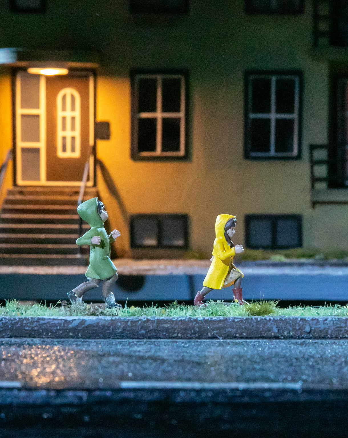 På scenen åpnes et tett, intimt rom der miniatyrer, modeller og levende lyd danner et skjæringspunkt mellom realisme og fiksjon. Detaljene vibrerer; hus, lys, vann og stemmer flettes sammen til et landskap som puster og går i stykker på samme tid.